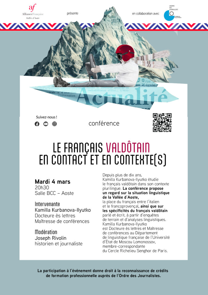 L’initiative est promue par l’Alliance Française Vallée d’Aoste en collaboration avec l’Ordre des journalistes de la Vallée d’Aoste.